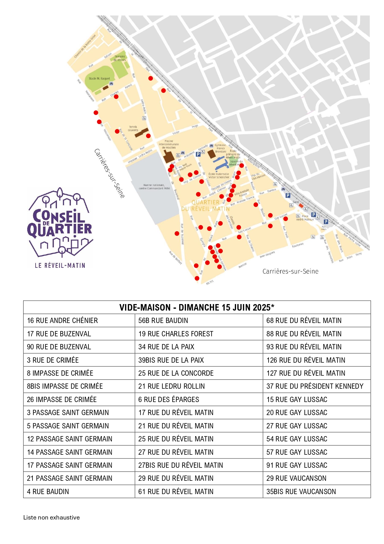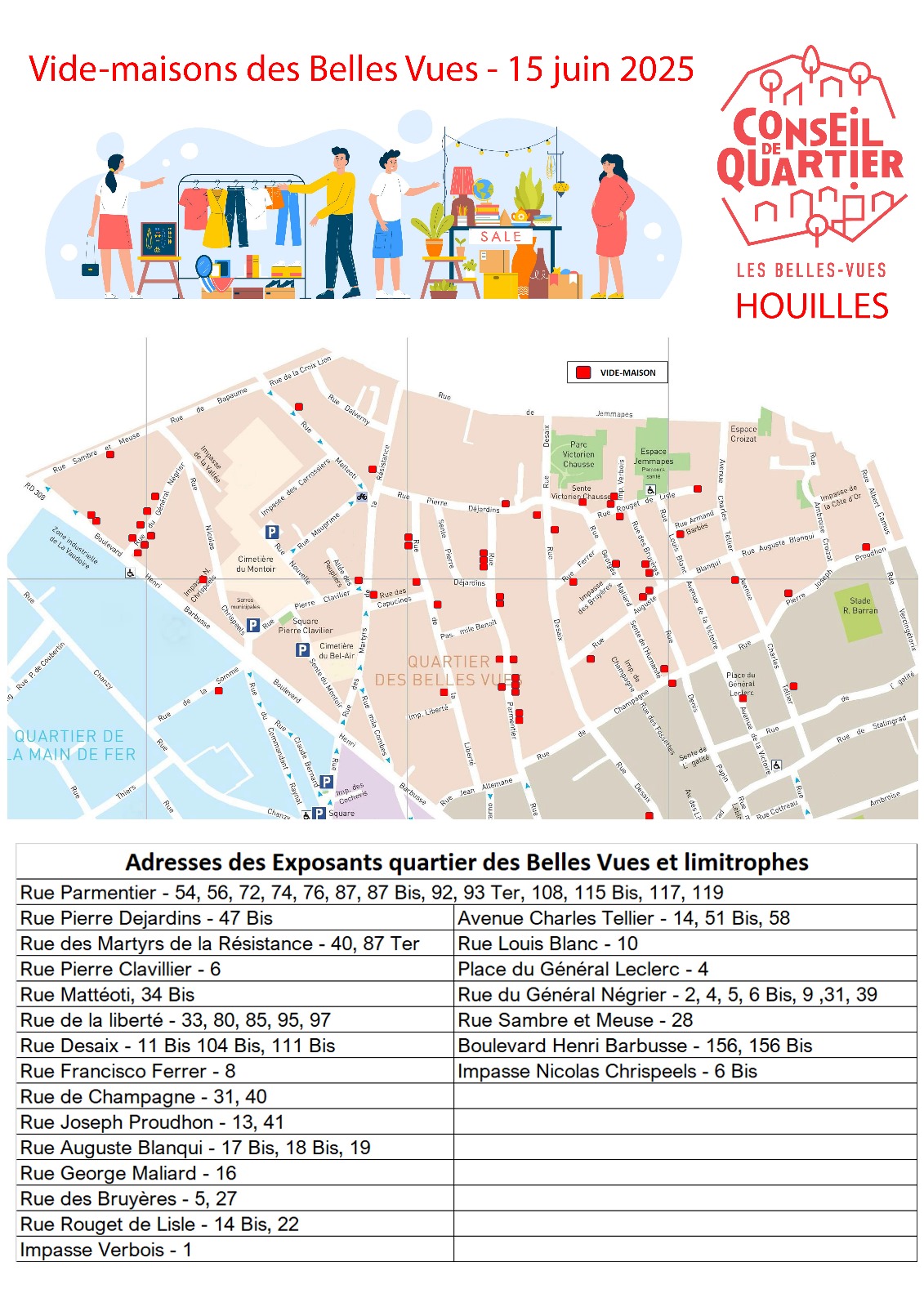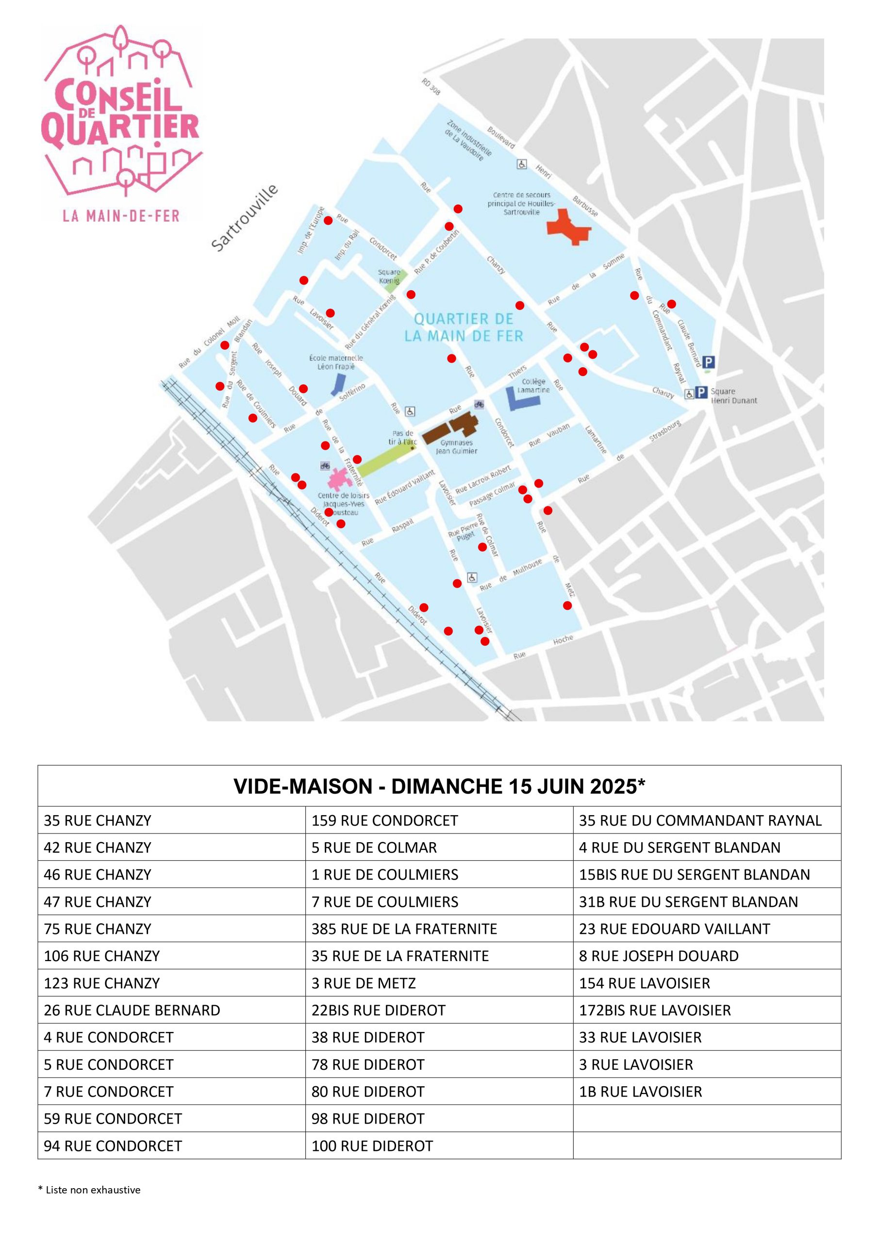 Les plans par quartier des adresses participant au vide-maison :