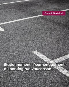 Le Conseil municipal a approuvé la signature d’une convention de financement dans le cadre du projet de création et d’aménagement d’un parking situé rue Vaucanson, dans le quartier du Réveil-Matin, à proximité d’un programme immobilier porté par la société SNC Kaufman & Broad Promotion 6.