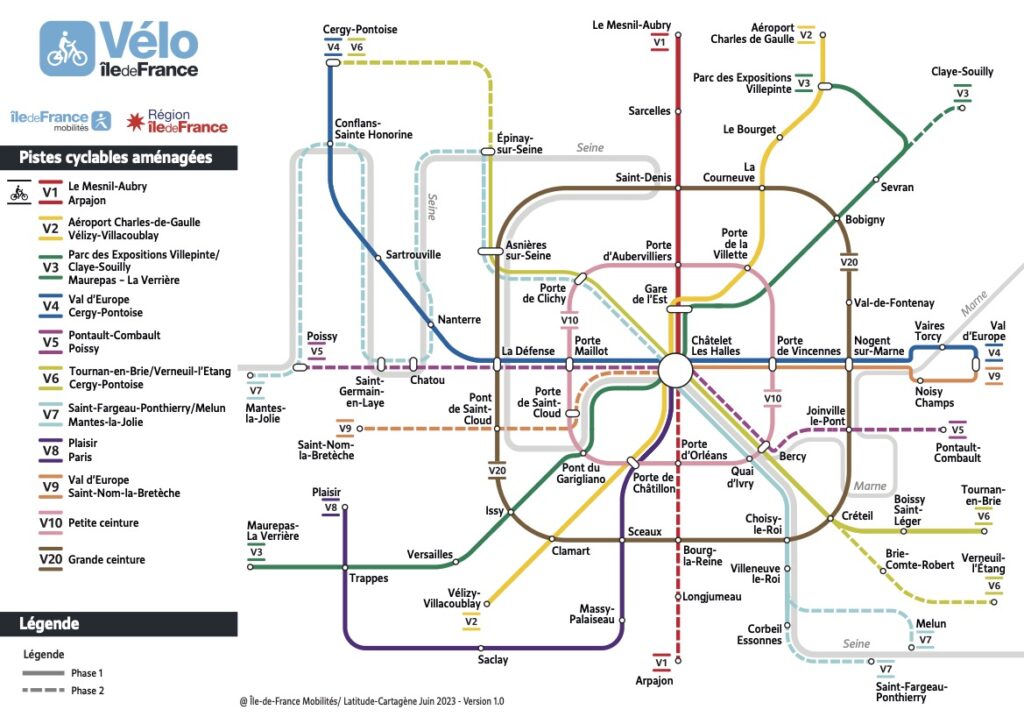 Anciennement appelé RER-Vélo, le réseau Vélo Île-de-France (VIF) a pour ambition de relier Paris et sa métropole à travers 11 itinéraires cyclables, soit 750 km d’ici 2030.